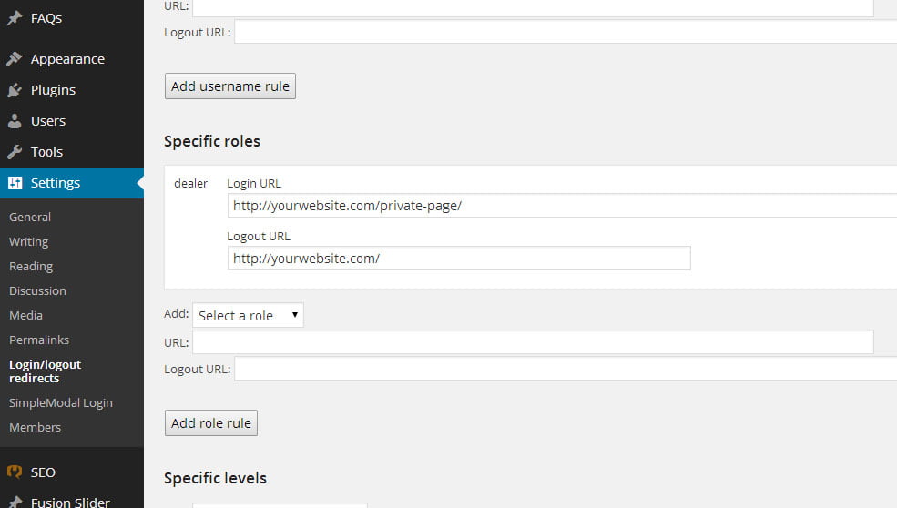 Next we need to create a Log In redirection so when a user logs in, they are not taken to the WordPress Administration back end.